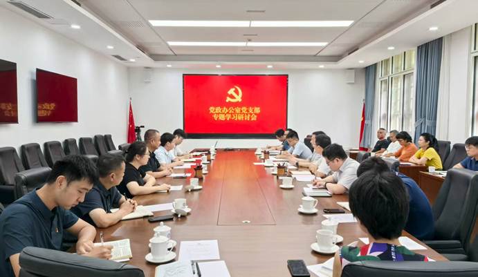 7月16日上午,党政办公室党支部在218楼二楼会议室举行专题学习研讨会,集中学习习近平总书记关于办公厅工作的重要指示精神以及全国党委和政府秘书长会议精神。校党委书记舒歌群、党委副书记周丛照以普通党员身份参加会议。党支部书记叶征主持会议。